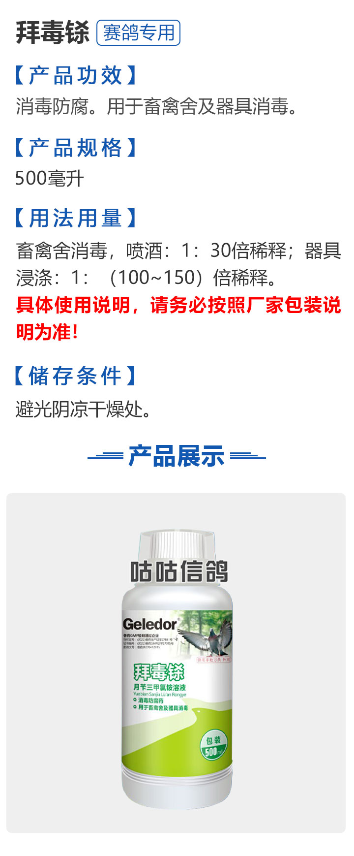 2026线上春展▪满600-40  -  指定商品:【爆灯】蓝精零 5克×10包 ;【爆灯】鸽滴威 5克×10包 ;【爆灯】莎门停 5克×10包 ;【爆灯】崇威灵 5克×10包 体内虫;【爆灯】益南混甘 5克×10包 ;【爆灯】回利球 5克×10包 ;【心连心】滴莎 10克×6袋;【爆灯】乎滴亢 5克×10包 ;【爆灯】超浓缩喜乐菌 500毫升 ;【心连心】球莎 10克×6袋 ;【爆灯】维诺护肝精 250毫升 ;【爆灯】虱螨体虫清 500毫升 ;【心连心】呼畅 10克×6袋 ;【爆灯】球可定 100毫升 ;【爆灯】复合预混合饲料Ⅱ维益菌 227克 ;【心连心】瘟痢停 10克×6袋 ;【爆灯】肠道宝 500克 ;【心连心】莎J净 10克×6袋 ;【心连心】鸽C净 10克×6袋 ;【顶峰】复合菌(胶囊)100粒 ;【顶峰】复合菌(粉剂) 280克 ;【顶峰】能量钙(浓缩型) 400毫升 ;【爱丽丝】喉痢清(加强型) 60粒(胶囊) ;【顶峰】能量钙(浓缩型) 2.5升 ;【爱丽丝】衣元净 60粒(胶囊);【施德福】特号六合一混合剂 5克×10包 ;【爱丽丝】毛滴虫净 60粒(胶囊);【爱丽丝】刹杆净(原沙门氏菌大肠杆菌杀星) 60粒(胶囊);【施德福】口服苗A 5克×10包 ;【爱丽丝】肝精 5克×10袋 ;【施德福】卡尼丁肝肾液 250毫升 ;【施德福】精华液 250毫升 ;【爱丽丝】呼吸道特号 60粒 (胶囊) ;【施德福】口服苗液 25毫升 ;【天津版稳拿】稳拿一号(呼吸道) 2公克×8袋 呼吸道;【天津版稳拿】稳拿二号(消化肠道) 3公克×8袋 肠道;【天津版稳拿】稳拿七号(毛滴虫) 2公克×8袋 毛滴虫;【上海龙园】魔宝 1000克 袋装;【上海龙园】维他肝精 250毫升 ;【上海龙园】鸽绿茶 100克 ;【上海龙园】浴宝 200克 ;【上海龙园】小育雏宝胶囊 100粒 ;【上海龙园】菌乐多 500毫升;【先锋】呼喉霸 5克×10包;【先锋】依原净 5克×10包 ;【西安凯鸽】客线枉 30毫升;【西安凯鸽】至樽独霸 100克;【西安凯鸽】至樽独霸 60粒(胶囊);【爆灯】T5鸽疫快克 20毫升 ;【西安凯鸽】果蔬营养丸 700克;【西安凯鸽】果蔬营养丸 2000克;【天津版稳拿】稳拿三号 2克×8包 球虫;【天津版稳拿】幼鸽夺霸 100粒 ;【天津版稳拿】幼鸽夺霸 300粒 ;【天津版稳拿】比赛夺霸3号 100粒 ;【天津版稳拿】比赛夺霸3号 300粒 ;【心连心】毛莎胶囊 60粒 ;【心连心】球锋胶囊 60粒 ;【天津版稳拿】虫清 3克×8包 体内虫;【心连心】呼畅 60粒(胶囊) ;【天津版稳拿】喉清 3克×8包 支原体/衣原体/念珠菌/呼吸道;【心连心】瘟痢停 60粒(胶囊) ;【天津版稳拿】粮霉清 200克 ;【心连心】莎J净胶囊 60粒 ;【爆灯】一滴灵 10毫升 单眼伤风;【爆灯】呼鼻灵 10毫升 ;【心连心】鸽C净 60粒(胶囊) ;【爆灯】维诺速补 100粒 ;【爆灯】老鸟回春丸 100粒 ;【心连心】毛呼二合一 10克×6袋;【爆灯】老鸟生子丸 100粒;【爆灯】依圆青 5克×10袋 ;【心连心】百消砃 100丸 ;【爆灯】泰力福 5克×10袋 呼吸道;【心连心】百消潵 150克 ;【爆灯】卫康防火墙 500毫升 ;【爆灯】矿力高峰液 250毫升;【心连心】独利双清 250毫升 ;【心连心】二合一啤酒酵母粉 600克 ;【爆灯】钙力奇 250毫升;【心连心】益酶多维电解质 150克 ;【爆灯】本草亢独饮 250毫升 ;【心连心】强化肝精(粉剂) 10克×10袋 ;【先锋】呼爽先锋 5克×10包 ;【心连心】强化肝精浓缩液 120毫升 ;【先锋】呼毛二合一 5克×10包 ;李猛推荐【爆灯】鸽疫康 500毫升 ;【先锋】先锋三合一 5克×10包 球虫/毛滴虫/沙门氏;【心连心】生物多肽矿物磷钙粉 500克 ;【先锋】净滴先锋 5克×10包;【心连心】AM活菌浓缩液 500毫升 ;【先锋】不脱翼 5毫升;李猛推荐【爆灯】维诺保 100毫升 ;【心连心】多效营养精华素 1680克 ;【心连心】AD3磷钙液 250毫升 ;【爆灯】超能素5000 1500克袋装 ;【心连心】瘟痢停丸 60丸 ;【爆灯】复合预混合饲料/6合1能量营养素 250克 ;【心连心】优益活菌液 1000毫升 ;【爱丽丝】喉痢清 5克×10袋 ;【上海龙园】种鸽宝 300粒 ;【上海龙园】种鸽粉 200克 ;【爱丽丝】衣原净2代 5克×10袋 ;【上海龙园】一喷灵 25毫升 ;【爱丽丝】毛滴净 5克×10袋 ;【上海龙园】绿色精 500毫升;【爱丽丝】刹杆净(原沙门氏菌大肠杆菌杀星) 5克×10袋 ;【上海龙园】营养蒜油 200毫升;【爱丽丝】呼吸道特号 5克×10袋 ;【上海龙园】康飞力 200毫升;【顶峰】保比液 100毫升 ;【上海龙园】赛神滴眼液 10毫升 ;【爱丽丝】毛球二合一 5克×10袋 ;【上海龙园】一滴灵 10毫升 单眼伤风;【爱丽丝】毛滴虫球虫二合一 60粒 ;【上海龙园】泻必停 5克×10袋 ;【顶峰】牛至香酚保比液 500毫升 ;【上海龙园】喉必清 5克×10袋;【顶峰】商寒停 100片 伤寒停;【顶峰】能量钙 300克 ;【上海龙园】抗球粉 5克×10包;【爱丽丝】稳肠赢 100克 ;【顶峰】全能电解质 500毫升 ;【上海龙园】抗滴粉 5克×10包 ;【顶峰】维他酵母粉 800克 ;【上海龙园】电解质维生素C粉 (甲7.5克+乙12.5克)×10组盒;【上海龙园】小育雏宝片剂 100片;【上海龙园】大育雏宝胶囊 500粒;【上海龙园】嗉囊清 100毫升;【上海龙园】大育雏宝片剂 500片;【上海龙园】粒粒成 100粒;【上海龙园】克虫宝 80粒;【上海龙园】红茶 100克;【上海龙园】强健宝 750克;【凡赛尔】欧乐强 鸽浴粉 1000克 天然沐浴圣品/消除肌肉疲劳/洗澡/洗浴;【爱丽丝】钙磷营养速补 400片;【北斗】雌宝 100粒;【北斗】雄宝 100粒 ;【北斗】克立停 100粒;【北斗】育雏宝 300粒;【天津版稳拿】稳拿五号 3克×8包 单眼伤风;【爆灯】多关秘密武器 30毫升 ;【爆灯】维诺