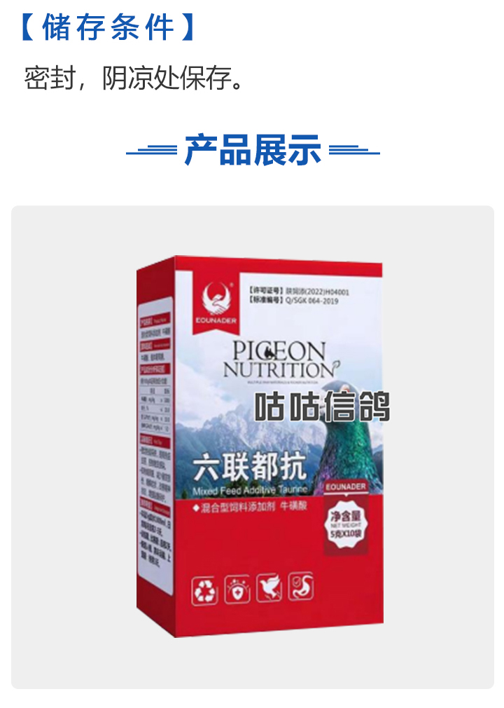 2026线上春展▪6元无门槛  -  指定商品:【爆灯】蓝精零 5克×10包 ;【爆灯】鸽滴威 5克×10包 ;【爆灯】莎门停 5克×10包 ;【爆灯】崇威灵 5克×10包 体内虫;【爆灯】益南混甘 5克×10包 ;【爆灯】回利球 5克×10包 ;【心连心】滴莎 10克×6袋;【爆灯】乎滴亢 5克×10包 ;【爆灯】超浓缩喜乐菌 500毫升 ;【心连心】球莎 10克×6袋 ;【爆灯】维诺护肝精 250毫升 ;【爆灯】虱螨体虫清 500毫升 ;【心连心】呼畅 10克×6袋 ;【爆灯】球可定 100毫升 ;【爆灯】复合预混合饲料Ⅱ维益菌 227克 ;【心连心】瘟痢停 10克×6袋 ;【爆灯】肠道宝 500克 ;【心连心】莎J净 10克×6袋 ;【心连心】鸽C净 10克×6袋 ;【顶峰】复合菌(胶囊)100粒 ;【顶峰】复合菌(粉剂) 280克 ;【顶峰】能量钙(浓缩型) 400毫升 ;【爱丽丝】喉痢清(加强型) 60粒(胶囊) ;【顶峰】能量钙(浓缩型) 2.5升 ;【爱丽丝】衣元净 60粒(胶囊);【施德福】特号六合一混合剂 5克×10包 ;【爱丽丝】毛滴虫净 60粒(胶囊);【爱丽丝】刹杆净(原沙门氏菌大肠杆菌杀星) 60粒(胶囊);【施德福】口服苗A 5克×10包 ;【爱丽丝】肝精 5克×10袋 ;【施德福】卡尼丁肝肾液 250毫升 ;【施德福】精华液 250毫升 ;【爱丽丝】呼吸道特号 60粒 (胶囊) ;【施德福】口服苗液 25毫升 ;【天津版稳拿】稳拿一号(呼吸道) 2公克×8袋 呼吸道;【天津版稳拿】稳拿二号(消化肠道) 3公克×8袋 肠道;【天津版稳拿】稳拿七号(毛滴虫) 2公克×8袋 毛滴虫;【上海龙园】魔宝 1000克 袋装;【上海龙园】维他肝精 250毫升 ;【上海龙园】鸽绿茶 100克 ;【上海龙园】浴宝 200克 ;【上海龙园】小育雏宝胶囊 100粒 ;【上海龙园】菌乐多 500毫升;【先锋】呼喉霸 5克×10包;【先锋】依原净 5克×10包 ;【西安凯鸽】客线枉 30毫升;【西安凯鸽】至樽独霸 100克;【西安凯鸽】至樽独霸 60粒(胶囊);【爆灯】T5鸽疫快克 20毫升 ;【西安凯鸽】果蔬营养丸 700克;【西安凯鸽】果蔬营养丸 2000克;【天津版稳拿】稳拿三号 2克×8包 球虫;【天津版稳拿】幼鸽夺霸 100粒 ;【天津版稳拿】幼鸽夺霸 300粒 ;【天津版稳拿】比赛夺霸3号 100粒 ;【天津版稳拿】比赛夺霸3号 300粒 ;【心连心】毛莎胶囊 60粒 ;【心连心】球锋胶囊 60粒 ;【天津版稳拿】虫清 3克×8包 体内虫;【心连心】呼畅 60粒(胶囊) ;【天津版稳拿】喉清 3克×8包 支原体/衣原体/念珠菌/呼吸道;【心连心】瘟痢停 60粒(胶囊) ;【天津版稳拿】粮霉清 200克 ;【心连心】莎J净胶囊 60粒 ;【爆灯】一滴灵 10毫升 单眼伤风;【爆灯】呼鼻灵 10毫升 ;【心连心】鸽C净 60粒(胶囊) ;【爆灯】维诺速补 100粒 ;【爆灯】老鸟回春丸 100粒 ;【心连心】毛呼二合一 10克×6袋;【爆灯】老鸟生子丸 100粒;【爆灯】依圆青 5克×10袋 ;【心连心】百消砃 100丸 ;【爆灯】泰力福 5克×10袋 呼吸道;【心连心】百消潵 150克 ;【爆灯】卫康防火墙 500毫升 ;【爆灯】矿力高峰液 250毫升;【心连心】独利双清 250毫升 ;【心连心】二合一啤酒酵母粉 600克 ;【爆灯】钙力奇 250毫升;【心连心】益酶多维电解质 150克 ;【爆灯】本草亢独饮 250毫升 ;【心连心】强化肝精(粉剂) 10克×10袋 ;【先锋】呼爽先锋 5克×10包 ;【心连心】强化肝精浓缩液 120毫升 ;【先锋】呼毛二合一 5克×10包 ;李猛推荐【爆灯】鸽疫康 500毫升 ;【先锋】先锋三合一 5克×10包 球虫/毛滴虫/沙门氏;【心连心】生物多肽矿物磷钙粉 500克 ;【先锋】净滴先锋 5克×10包;【心连心】AM活菌浓缩液 500毫升 ;【先锋】不脱翼 5毫升;李猛推荐【爆灯】维诺保 100毫升 ;【心连心】多效营养精华素 1680克 ;【心连心】AD3磷钙液 250毫升 ;【爆灯】超能素5000 1500克袋装 ;【心连心】瘟痢停丸 60丸 ;【爆灯】复合预混合饲料/6合1能量营养素 250克 ;【心连心】优益活菌液 1000毫升 ;【爱丽丝】喉痢清 5克×10袋 ;【上海龙园】种鸽宝 300粒 ;【上海龙园】种鸽粉 200克 ;【爱丽丝】衣原净2代 5克×10袋 ;【上海龙园】一喷灵 25毫升 ;【爱丽丝】毛滴净 5克×10袋 ;【上海龙园】绿色精 500毫升;【爱丽丝】刹杆净(原沙门氏菌大肠杆菌杀星) 5克×10袋 ;【上海龙园】营养蒜油 200毫升;【爱丽丝】呼吸道特号 5克×10袋 ;【上海龙园】康飞力 200毫升;【顶峰】保比液 100毫升 ;【上海龙园】赛神滴眼液 10毫升 ;【爱丽丝】毛球二合一 5克×10袋 ;【上海龙园】一滴灵 10毫升 单眼伤风;【爱丽丝】毛滴虫球虫二合一 60粒 ;【上海龙园】泻必停 5克×10袋 ;【顶峰】牛至香酚保比液 500毫升 ;【上海龙园】喉必清 5克×10袋;【顶峰】商寒停 100片 伤寒停;【顶峰】能量钙 300克 ;【上海龙园】抗球粉 5克×10包;【爱丽丝】稳肠赢 100克 ;【顶峰】全能电解质 500毫升 ;【上海龙园】抗滴粉 5克×10包 ;【顶峰】维他酵母粉 800克 ;【上海龙园】电解质维生素C粉 (甲7.5克+乙12.5克)×10组盒;【上海龙园】小育雏宝片剂 100片;【上海龙园】大育雏宝胶囊 500粒;【上海龙园】嗉囊清 100毫升;【上海龙园】大育雏宝片剂 500片;【上海龙园】粒粒成 100粒;【上海龙园】克虫宝 80粒;【上海龙园】红茶 100克;【上海龙园】强健宝 750克;【凡赛尔】欧乐强 鸽浴粉 1000克 天然沐浴圣品/消除肌肉疲劳/洗澡/洗浴;【爱丽丝】钙磷营养速补 400片;【北斗】雌宝 100粒;【北斗】雄宝 100粒 ;【北斗】克立停 100粒;【北斗】育雏宝 300粒;【天津版稳拿】稳拿五号 3克×8包 单眼伤风;【爆灯】多关秘密武器 30毫升 ;【爆灯】