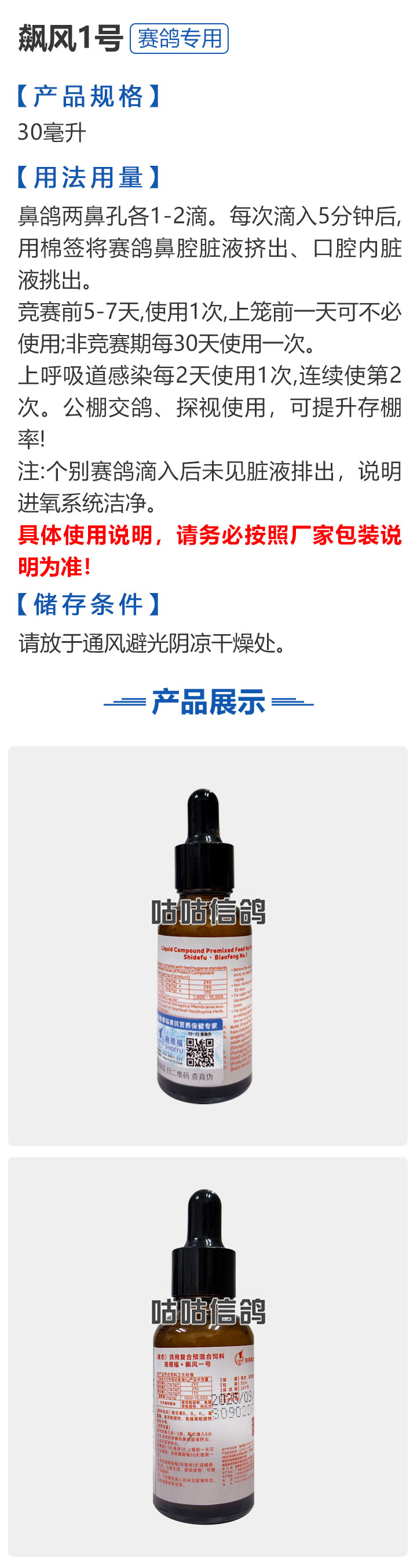 2026线上春展▪6元无门槛  -  指定商品:【爆灯】蓝精零 5克×10包 ;【爆灯】鸽滴威 5克×10包 ;【爆灯】莎门停 5克×10包 ;【爆灯】崇威灵 5克×10包 体内虫;【爆灯】益南混甘 5克×10包 ;【爆灯】回利球 5克×10包 ;【心连心】滴莎 10克×6袋;【爆灯】乎滴亢 5克×10包 ;【爆灯】超浓缩喜乐菌 500毫升 ;【心连心】球莎 10克×6袋 ;【爆灯】维诺护肝精 250毫升 ;【爆灯】虱螨体虫清 500毫升 ;【心连心】呼畅 10克×6袋 ;【爆灯】球可定 100毫升 ;【爆灯】复合预混合饲料Ⅱ维益菌 227克 ;【心连心】瘟痢停 10克×6袋 ;【爆灯】肠道宝 500克 ;【心连心】莎J净 10克×6袋 ;【心连心】鸽C净 10克×6袋 ;【顶峰】复合菌(胶囊)100粒 ;【顶峰】复合菌(粉剂) 280克 ;【顶峰】能量钙(浓缩型) 400毫升 ;【爱丽丝】喉痢清(加强型) 60粒(胶囊) ;【顶峰】能量钙(浓缩型) 2.5升 ;【爱丽丝】衣元净 60粒(胶囊);【施德福】特号六合一混合剂 5克×10包 ;【爱丽丝】毛滴虫净 60粒(胶囊);【爱丽丝】刹杆净(原沙门氏菌大肠杆菌杀星) 60粒(胶囊);【施德福】口服苗A 5克×10包 ;【爱丽丝】肝精 5克×10袋 ;【施德福】卡尼丁肝肾液 250毫升 ;【施德福】精华液 250毫升 ;【爱丽丝】呼吸道特号 60粒 (胶囊) ;【施德福】口服苗液 25毫升 ;【天津版稳拿】稳拿一号(呼吸道) 2公克×8袋 呼吸道;【天津版稳拿】稳拿二号(消化肠道) 3公克×8袋 肠道;【天津版稳拿】稳拿七号(毛滴虫) 2公克×8袋 毛滴虫;【上海龙园】魔宝 1000克 袋装;【上海龙园】维他肝精 250毫升 ;【上海龙园】鸽绿茶 100克 ;【上海龙园】浴宝 200克 ;【上海龙园】小育雏宝胶囊 100粒 ;【上海龙园】菌乐多 500毫升;【先锋】呼喉霸 5克×10包;【先锋】依原净 5克×10包 ;【西安凯鸽】客线枉 30毫升;【西安凯鸽】至樽独霸 100克;【西安凯鸽】至樽独霸 60粒(胶囊);【爆灯】T5鸽疫快克 20毫升 ;【西安凯鸽】果蔬营养丸 700克;【西安凯鸽】果蔬营养丸 2000克;【天津版稳拿】稳拿三号 2克×8包 球虫;【天津版稳拿】幼鸽夺霸 100粒 ;【天津版稳拿】幼鸽夺霸 300粒 ;【天津版稳拿】比赛夺霸3号 100粒 ;【天津版稳拿】比赛夺霸3号 300粒 ;【心连心】毛莎胶囊 60粒 ;【心连心】球锋胶囊 60粒 ;【天津版稳拿】虫清 3克×8包 体内虫;【心连心】呼畅 60粒(胶囊) ;【天津版稳拿】喉清 3克×8包 支原体/衣原体/念珠菌/呼吸道;【心连心】瘟痢停 60粒(胶囊) ;【天津版稳拿】粮霉清 200克 ;【心连心】莎J净胶囊 60粒 ;【爆灯】一滴灵 10毫升 单眼伤风;【爆灯】呼鼻灵 10毫升 ;【心连心】鸽C净 60粒(胶囊) ;【爆灯】维诺速补 100粒 ;【爆灯】老鸟回春丸 100粒 ;【心连心】毛呼二合一 10克×6袋;【爆灯】老鸟生子丸 100粒;【爆灯】依圆青 5克×10袋 ;【心连心】百消砃 100丸 ;【爆灯】泰力福 5克×10袋 呼吸道;【心连心】百消潵 150克 ;【爆灯】卫康防火墙 500毫升 ;【爆灯】矿力高峰液 250毫升;【心连心】独利双清 250毫升 ;【心连心】二合一啤酒酵母粉 600克 ;【爆灯】钙力奇 250毫升;【心连心】益酶多维电解质 150克 ;【爆灯】本草亢独饮 250毫升 ;【心连心】强化肝精(粉剂) 10克×10袋 ;【先锋】呼爽先锋 5克×10包 ;【心连心】强化肝精浓缩液 120毫升 ;【先锋】呼毛二合一 5克×10包 ;李猛推荐【爆灯】鸽疫康 500毫升 ;【先锋】先锋三合一 5克×10包 球虫/毛滴虫/沙门氏;【心连心】生物多肽矿物磷钙粉 500克 ;【先锋】净滴先锋 5克×10包;【心连心】AM活菌浓缩液 500毫升 ;【先锋】不脱翼 5毫升;李猛推荐【爆灯】维诺保 100毫升 ;【心连心】多效营养精华素 1680克 ;【心连心】AD3磷钙液 250毫升 ;【爆灯】超能素5000 1500克袋装 ;【心连心】瘟痢停丸 60丸 ;【爆灯】复合预混合饲料/6合1能量营养素 250克 ;【心连心】优益活菌液 1000毫升 ;【爱丽丝】喉痢清 5克×10袋 ;【上海龙园】种鸽宝 300粒 ;【上海龙园】种鸽粉 200克 ;【爱丽丝】衣原净2代 5克×10袋 ;【上海龙园】一喷灵 25毫升 ;【爱丽丝】毛滴净 5克×10袋 ;【上海龙园】绿色精 500毫升;【爱丽丝】刹杆净(原沙门氏菌大肠杆菌杀星) 5克×10袋 ;【上海龙园】营养蒜油 200毫升;【爱丽丝】呼吸道特号 5克×10袋 ;【上海龙园】康飞力 200毫升;【顶峰】保比液 100毫升 ;【上海龙园】赛神滴眼液 10毫升 ;【爱丽丝】毛球二合一 5克×10袋 ;【上海龙园】一滴灵 10毫升 单眼伤风;【爱丽丝】毛滴虫球虫二合一 60粒 ;【上海龙园】泻必停 5克×10袋 ;【顶峰】牛至香酚保比液 500毫升 ;【上海龙园】喉必清 5克×10袋;【顶峰】商寒停 100片 伤寒停;【顶峰】能量钙 300克 ;【上海龙园】抗球粉 5克×10包;【爱丽丝】稳肠赢 100克 ;【顶峰】全能电解质 500毫升 ;【上海龙园】抗滴粉 5克×10包 ;【顶峰】维他酵母粉 800克 ;【上海龙园】电解质维生素C粉 (甲7.5克+乙12.5克)×10组盒;【上海龙园】小育雏宝片剂 100片;【上海龙园】大育雏宝胶囊 500粒;【上海龙园】嗉囊清 100毫升;【上海龙园】大育雏宝片剂 500片;【上海龙园】粒粒成 100粒;【上海龙园】克虫宝 80粒;【上海龙园】红茶 100克;【上海龙园】强健宝 750克;【凡赛尔】欧乐强 鸽浴粉 1000克 天然沐浴圣品/消除肌肉疲劳/洗澡/洗浴;【爱丽丝】钙磷营养速补 400片;【北斗】雌宝 100粒;【北斗】雄宝 100粒 ;【北斗】克立停 100粒;【北斗】育雏宝 300粒;【天津版稳拿】稳拿五号 3克×8包 单眼伤风;【爆灯】多关秘密武器 30毫升 ;【爆灯】